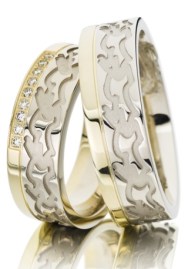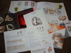 Tja, dass alles ist nun schon gut 3 Monate her. Und eine Entscheidung hatten wir bis letzte Woche immer noch nicht getroffen. Nachdem ich das Thema mal wieder zur Sprache gebracht hatte, waren wir uns recht schnell einig, das knapp 1.500,00 € für „Ringe“ einfach zuviel Geld ist. Ich schaute mich nach Alternativen um, wie man schlichte u. dadurch vielleicht auch günstigere Ringe individuell zu etwas Besonderem machen könnte. Bei meiner Suche stieß ich auf die verschiedensten Gravurmöglichkeiten, auch außen am Ring entlang. Eine Idee, die immer mehr Gefallen fand, vor allem, da auch der Hase dem gegenüber nicht abgeneigt war. Dann fand ich über die Trauringfirma Fischer den „konfischerator“. Eine Internetseite, auf der man sich seine Eheringe selbst nach allen (von mir oben mal grob zusammengefassten) Kriterien zusammenstellen kann. Wir waren begeistert. Für die Breite, Höhe und Ringform orientierte ich mich an unseren „Messelieblingen“. Dann stellten wir 2 Varianten zusammen, einmal nur Weißgold und ein Paar in Bicolor (Weiß- u. Gelbgold). Wir einigten uns relativ schnell auf eine Innengravur, doch dann konnte man dort leider keine Außengravur bestimmen. Von den zahlreichen Prospekten, die ich von der Firma habe, wusste ich allerdings, dass eine Außengravur machbar ist und Symbole, Schriftzeichen und auch andere Sachen, wie z. B. ein Fingerabdruck möglich sind.