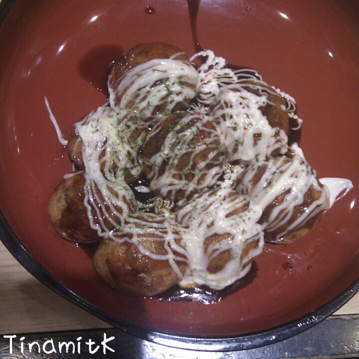 Gegen 16:00 Uhr waren wir zurück im Hotel. Dort versuchten wir erstmal eine Skypeverbindung zu meiner Mutti herzustellen. Allerdings nur mit Teilerfolg. Sehen ja, hören nein! Wir beschlossen das Ganze am späteren Abend (also für uns Abend, für Mutti Nachmittag) nochmal zu versuchen. Um 18 Uhr machten wir uns wieder auf die Beine Richtung Innenstadt. Wir schlenderten durch die Shoppingarkaden und als ich einen Takoyaki-Stand (Takoyaki: jap. たこ焼き sind Teigbällchen mit Oktopusstückchen) entdeckte wollte ich sofort welche probieren. Für 8 „Bällchen“ zahlten wir 350 Yen, eigentlich sehr günstig, denn die Dinger stopfen ganz schön und sind wahnsinnig lecker!!