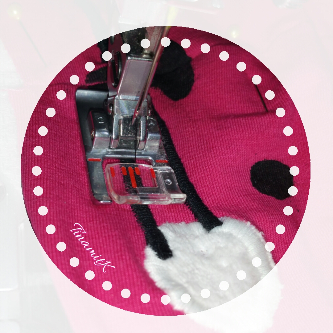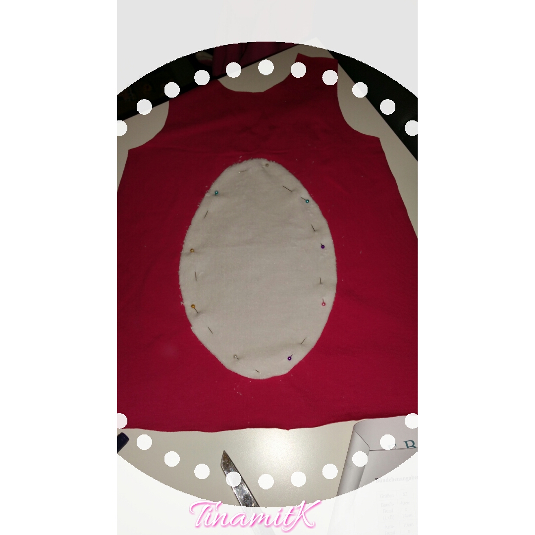 Ich habe dann die Kapuze gemäß Anleitung genäht, die Stellen für die Ohren markiert und sie sodann angenäht. Anschließend werden Augen und Nase mittels Stoffstempelfarbe aufgestempelt. Ich habe mir hierfür eine kleine Schablone aus dickerem Papier gebastelt.