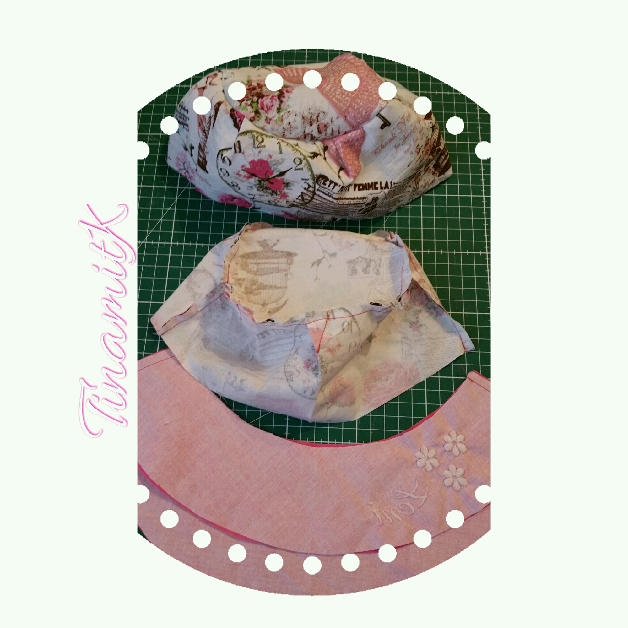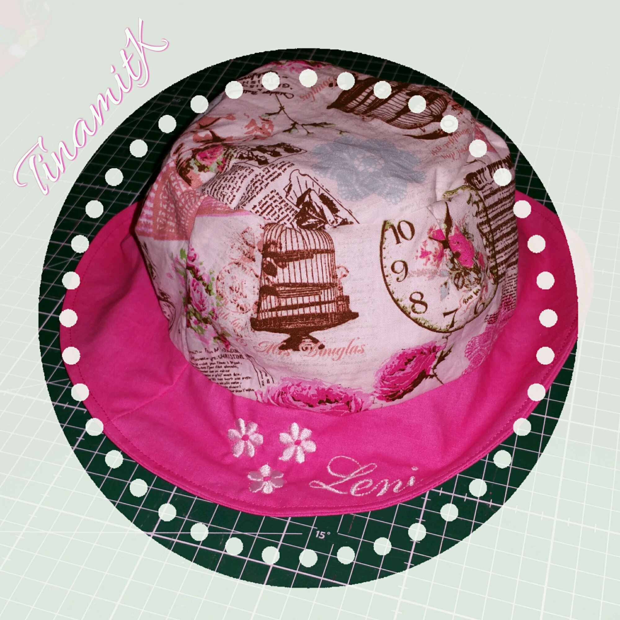 Zunächst werden natürlich die einzelnen Teile zugeschnitten. Je 2 mal, da hier mit einem „Außen-“ und einem „Innenhut“ arbeiten. Für den Schirm des äußeren Hutes habe ich mir noch eine Stickdatei ausgesucht, das Muster auf das entsprechende Stoffteil aufgestickt und danach zugeschnitten.