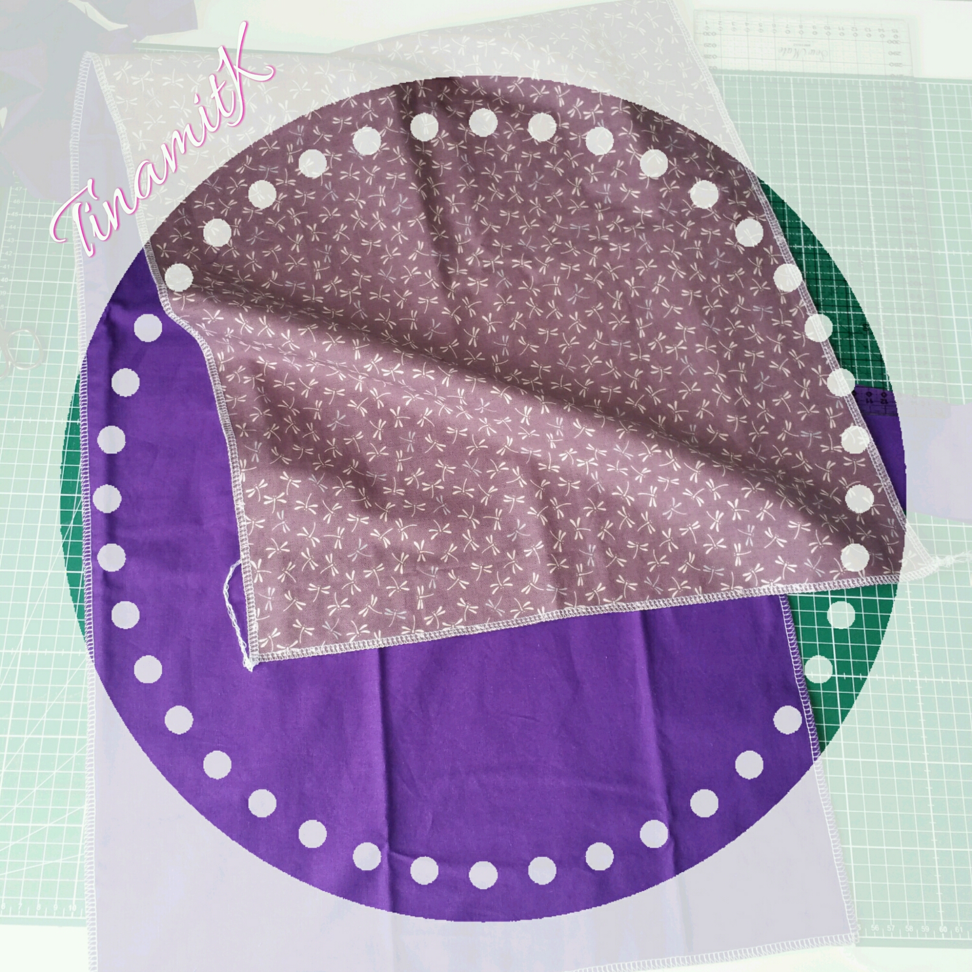 Zuerst habe ich mir alle Stoffteile zurechtgeschnitten, 1 x den Außenstoff und 1 x den Innenstoff und den Stoff für die Tasche.