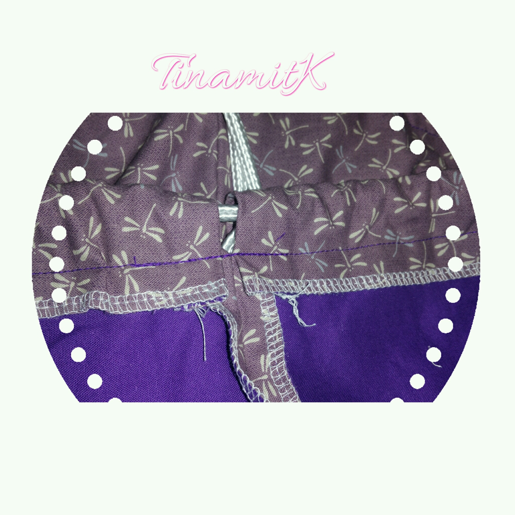 Wie man vielleicht sieht, habe ich die Kordel bzw. das Band etwas anders befestigt bzw. müssen, da es einfach zu dick war und ich nicht riskieren wollte, dass meine Nähmaschine oder meine Overlock streiken. Also habe ich dort, wo im Video das Band an den unteren Ecken befestigt wird, einfach kleine Schlaufen aus Wäscheband angenäht. Durch diese wird dann die Kordel durchgeführt und – wie in meinem Fall – verknotet. Man könnte hier natürlich auch entsprechende Kordelstopper oder ähnliches verwenden.