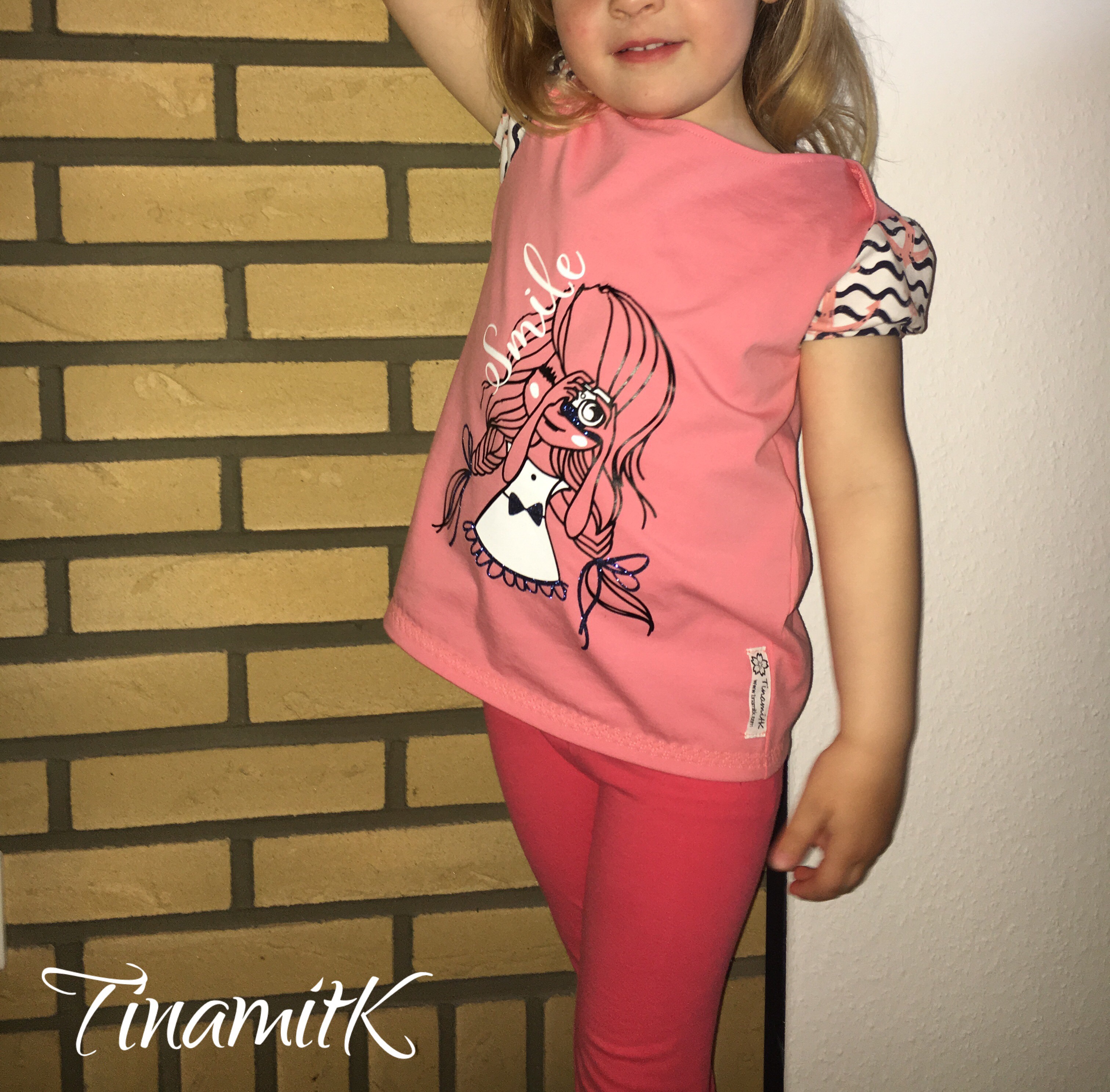 Alles in allem kann sich das Ergebnis aber sehen lassen und hätte der Puschel nicht viel lieber Kleidchen im Schrank (es kam nämlich gleich der vorwurfsvolle Kommentar, warum ich denn kein Kleid nähe!), würde ich definitiv noch mehr Shirts dieser Art nähen.