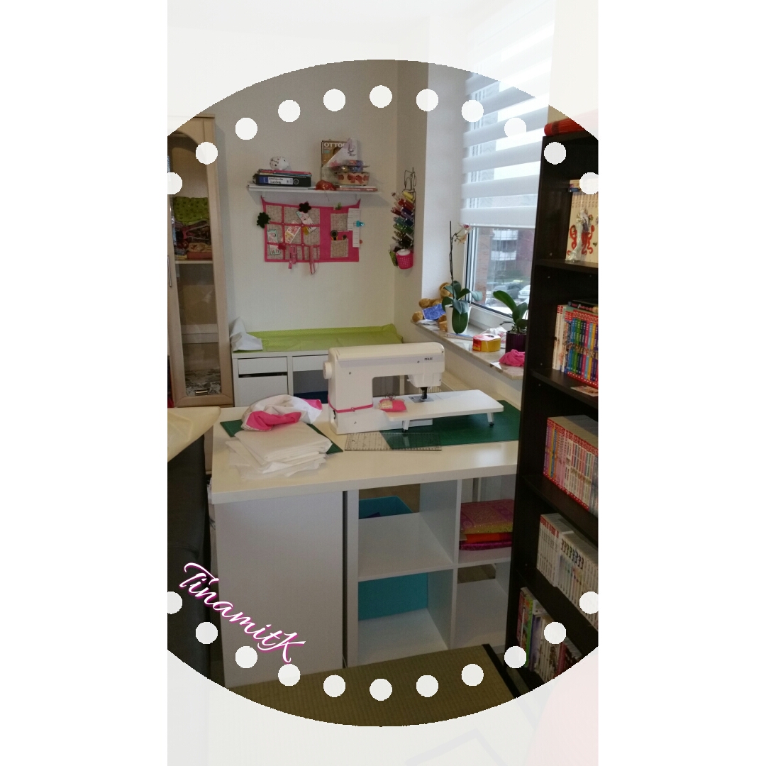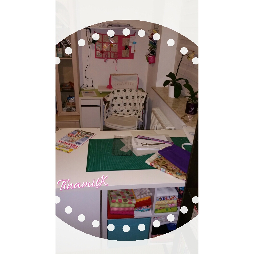 Dem Schreibtisch, auf welchem meine Nähmaschine steht, verpasste ich mit einem Wachstuch noch eine neue, wiederstandsfähigere Arbeitsfläche.