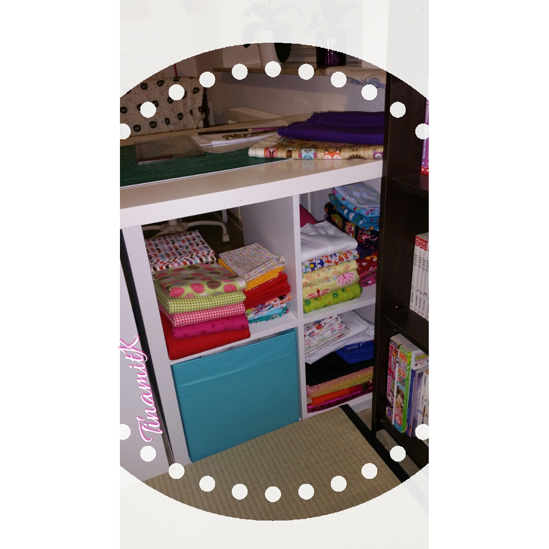 Endlich mehr Platz für meine Stoffe. Die konnten nämlich nun aus der Schrankwand aus und in die Regale einziehen. Und das Beste, es ist noch Platz für mehr.
