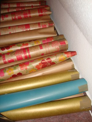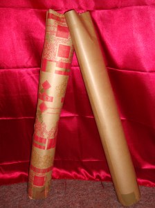 Das Auffädeln auf Sehne mit immer einer Perle dazwischen ist wirklich sehr viel aufwändiger als ich dachte. Momentan ist das Ganze etwas ins stocken geraten, da uns die Haken zum Aufhängen fehlen, muss erst wieder welche kaufen. Ach ja, und was unser einstiges Transportproblem angeht, haben wir eine SUPER Lösung gefunden. An dieser Stelle danke an Flo!! ^^ Wir haben ihren Tipp nur noch etwas aufgemotzt. Da wir ja nirgends auch nur annähernd genug Versandrohre auftreiben konnten (zu einem akzeptablen Preis), haben wir zu Packpapier gegriffen und ein Versandrohr, das wir zu Hause haben, sozusagen als Modellierungsgrundlage für Packpapierrollen verwendet. Das geht ziemlich gut!