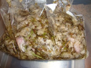 Nunja, wie der Titel schon vermuten lässt, es hat nicht funktioniert. Das allein liegt wohl aber an der Tatsache, dass ich nicht die „richtige“ Kirschblütenart hatte. Als ich den Beutel mit dem Blüten-Salzlake-Mix nach 3 Tagen aus dem Kühlschrank nahm, sah man schon auf den ersten Blick, dass der Versuch missglückt war.
