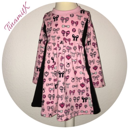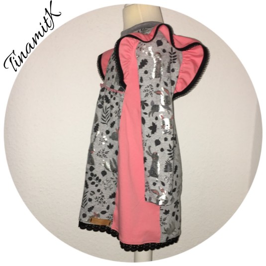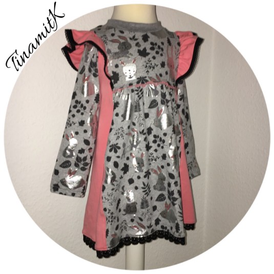 Schmuckstück von RosaRosa ist eine Puzzle-Tunika die man beliebig kombinieren kann. Ich habe den Saum etwas verlängert, damit er ein wenig mehr in die Richtung Kleidchen geht. Den ersten Versuch habe ich also (bis auf die Verlängerung) genau nach Anleitung gefertigt. An sich ist es auch gut gelungen, nur da der Puschel etwas Bauch hat, trug der vordere gekräuselte Teil doch sehr auf.